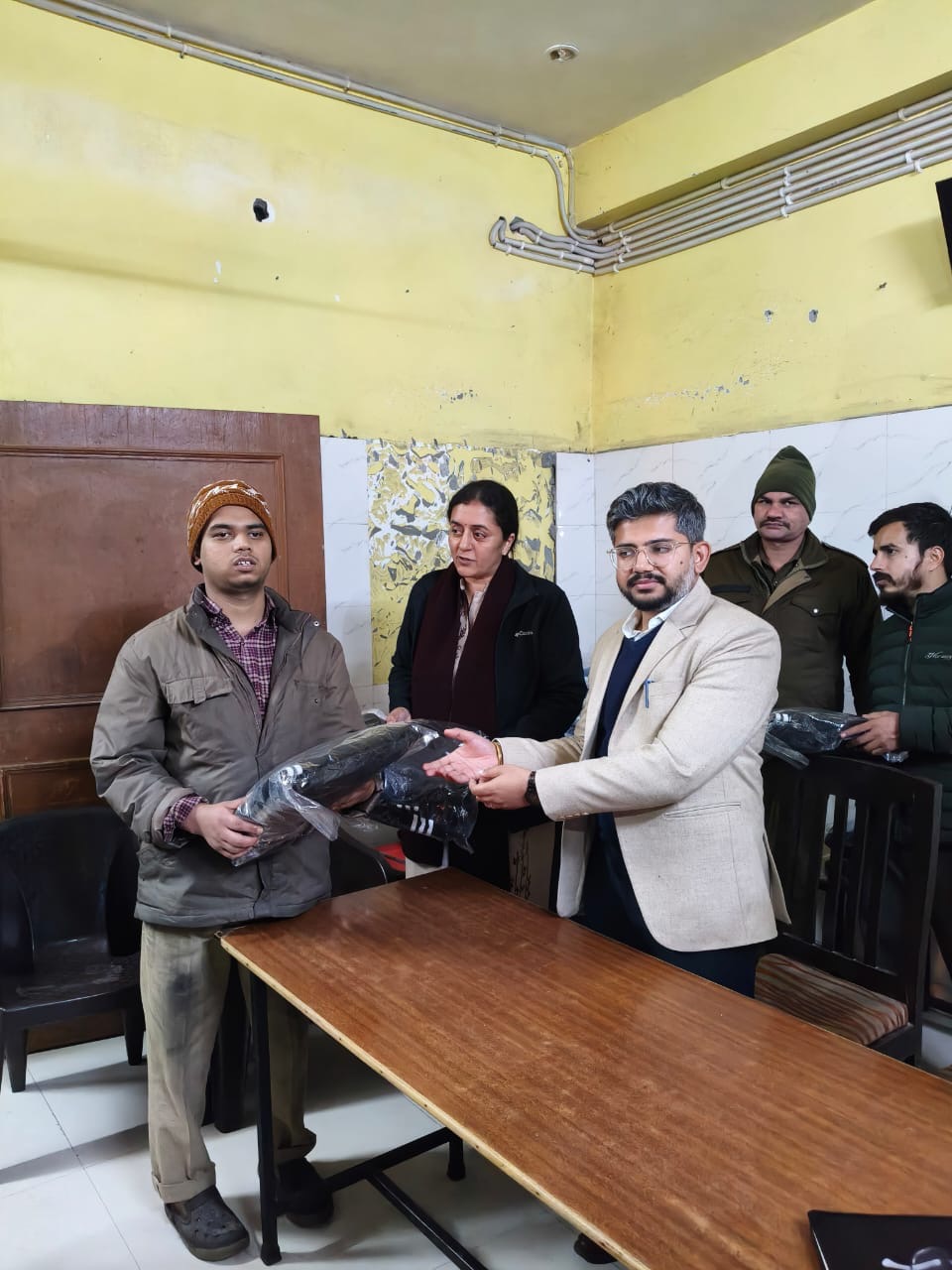 निरीक्षण के दौरान आश्रम में निवासरत अनाथ, परित्यक्त एवं निराश्रित कुल 26 दिव्यांग बालकों को मुख्य विकास अधिकारी द्वारा सीएसआर फंड के माध्यम से 35 जोड़ी गर्म ट्रैक सूट वितरित किए गए।