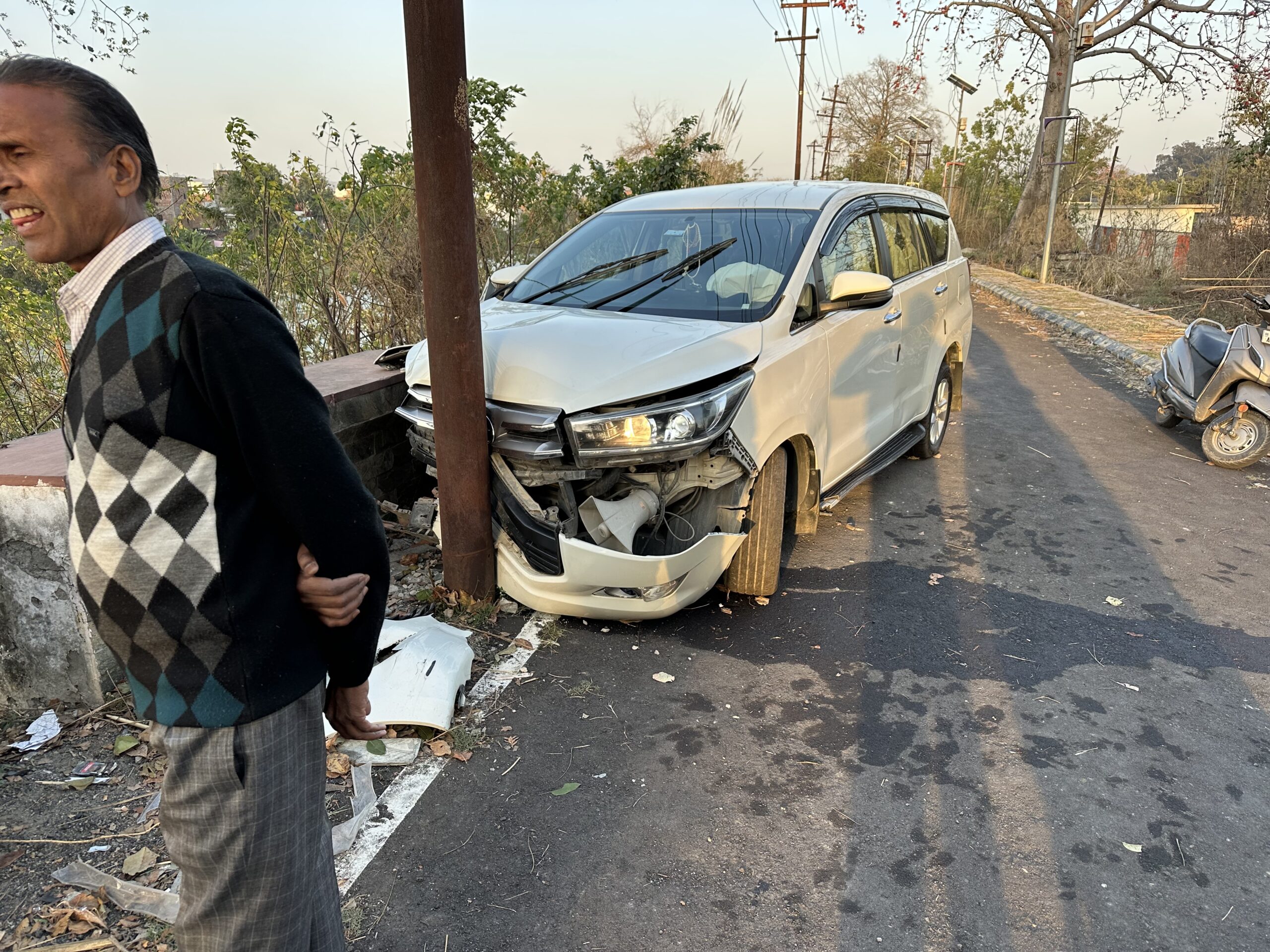 हरिद्वार-आज गुरुकुल कांगड़ी बिजली घर के पीछे नहर पटरी पर एक गाड़ी टकराई बिजली के पोल से जबकि इस पटरी पर काफी लोग घुमते है बड़ा हादसा होने से बचा है देखने में आता इस पटरी बाईक और कार बड़ी तेजी दोड़ती रहती है कई लोगो को चोट भी लगती है किसी दिन बड़ा हादसा भी हो सकता है