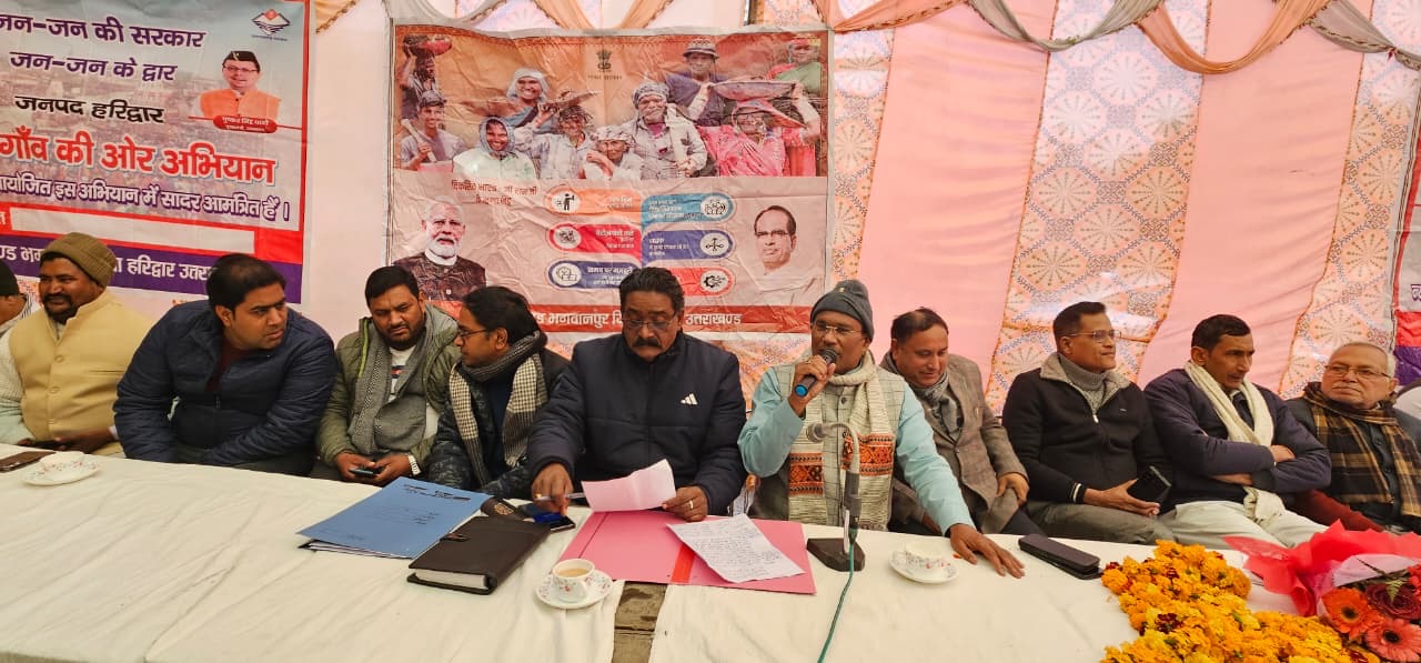कार्यक्रम को संबोधित करते हुए उपाध्यक्ष, समाज कल्याण योजनाएं अनुश्रवण समिति (राज्यमंत्री स्तर)देशराज कर्णवाल ने कहा कि प्रदेश के यशस्वी मुख्यमंत्री श्री पुष्कर सिंह धामी जी के निर्देशानुसार प्रदेश की सभी न्याय पंचायतों में यह अभियान चलाया जा रहा है। इसका उद्देश्य विभिन्न विभागों द्वारा संचालित जन-कल्याणकारी योजनाओं का लाभ पात्र नागरिकों तक पहुँचाना है तथा उनकी समस्याओं का त्वरित गति से समाधान सुनिश्चित करना है।