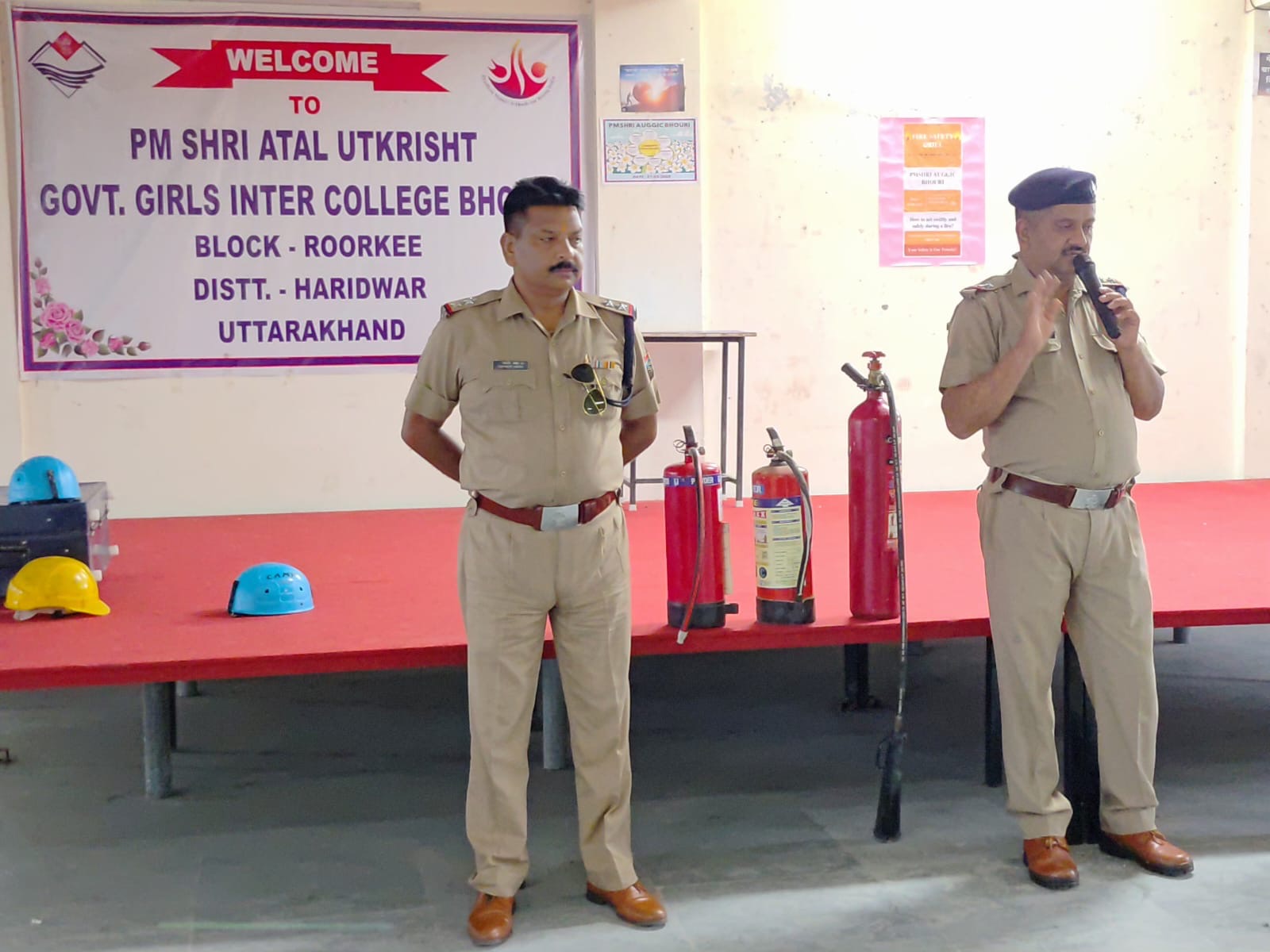 एसएसपी हरिद्वार के आदेश एवं निर्देश के क्रम में जन जागरण अभियान के अंतर्गत फायर यूनिट रुड़की की टीम द्वारा पीएम श्री अटल उत्कृष्ट बालिका इंटर कॉलेज भोरी में पहुंच कर विद्यालय में उपस्थित छात्राओं अध्यापिकाओं को अग्नि दुर्घटनाओं को कैसे कम किया जा सकता है या रोका जा सकता है। प्राथमिक अग्निशमन उपकरणों की प्रयोग विधि एलपीजी सिलेंडर लिकेज से होने वाली अग्नि दुर्घटनाओं को कैसे रोका जा सकता है के बारे में विस्तार से बताया एवं समझाया गया ।
