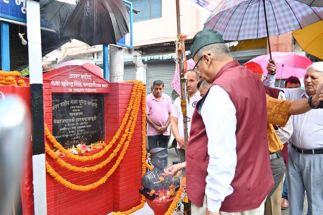 इस दौरान मेजर जनरल (सेनि) सम्मी सभरवाल, पार्षद भूपेंद्र कठेत, शहीद के पिता गजेंद्र कंडारी, शहीद के भाई शैलेंद्र सिंह कंडारी, राहुल राणा, अशोक गुप्ता सहित कई क्षेत्रवासी उपस्थित रहे।